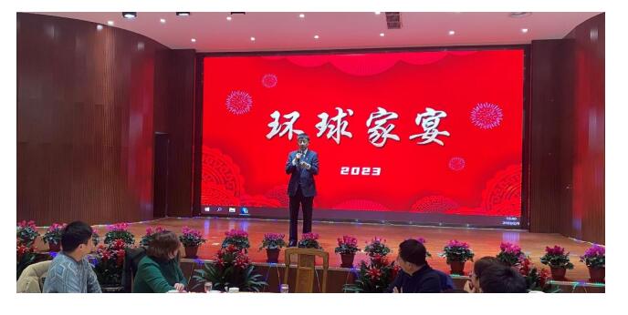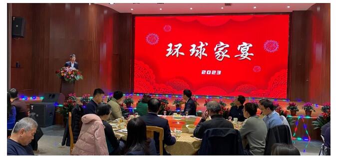 家宴活動上,董事長管陽春發(fā)表致辭,并攜集團董事會成員一起上臺,與在場所有員工共同舉杯,共同祝愿環(huán)球事業(yè)更加輝煌。