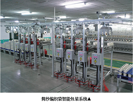 筒紗編織袋智能包裝系統是賽特環球機械(青島)有限公司的明星產品,主要應用于紡織領域。該系統中取放紗機械手、品種智能卸紗平臺、筒紗自動堆垛拆垛系統、視覺檢測等多項技術首次應用于國內筒紗包裝行業;筒紗成品編織袋包裝的獨立夾整裝置、整包紗上方或下方加紙板入袋等專利技術,位于世界筒紗編織袋包裝行業領先位置;筒紗編織袋智能包裝系統實現了全流程無人化、智能化模式生產。目前,筒紗編織袋智能包裝系統擁有授權專利和軟件著作權25項、已授權發明專利5項、已授權實用新型專利13項、待授權發明專利2項、已獲著作權5項。賽特環球是一家擁有完全自主知識產權,全面掌握粗細聯合智能粗紗機系統、筒紗智能包裝物流系統及智能物流倉儲系統核心技術,具備世界領先水平并全面投放市場的高新技術企業,目前已累計為國內外客戶打造了1000多萬紗錠的數字化紡紗物流包裝車間。