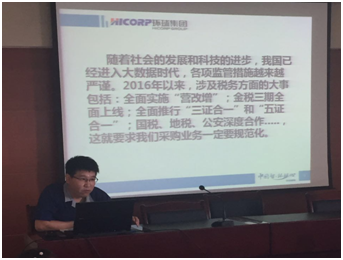 集團財務部徐經理對財務知識、發票、承兌、預付款等進行了詳細講解,徐經理指出隨著社會發展和科技的進步,我國已進入大數據時代,各項監管措施越來越嚴謹。2016年以來,涉及稅務方面的大事包括:全面實施“營改增”;金稅三期全面上線;全面推行“三證合一”和“五證合一”;國稅、地稅、公安深度合作……圍繞發展趨勢,對我們的采供業務提出了更高的要求,要求更加的嚴謹和規范。