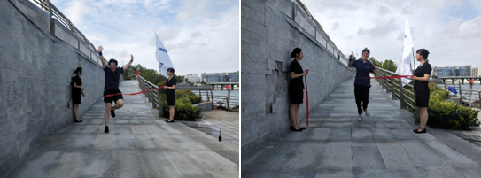 僅26分43秒,來自賽特環球的薛凱文完成了環島旅程,率先抵達終點,摘得健步達人賽男子組桂冠。來自青島普天的崔麗以38分46秒的成績斬獲女子組冠軍,來自集團職能科室及各公司的10名參賽選手分獲亞軍、季軍。陸陸續續,終點的人越來越多,大家合影、自拍,分享途中收獲的喜悅。