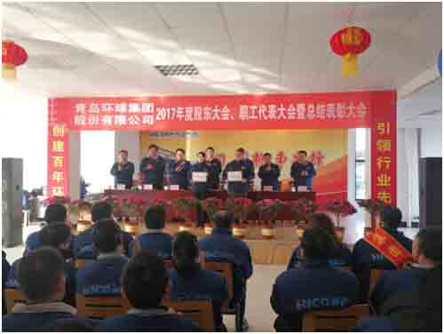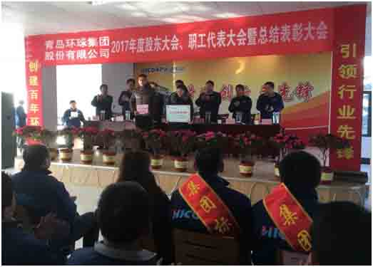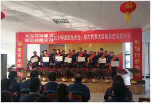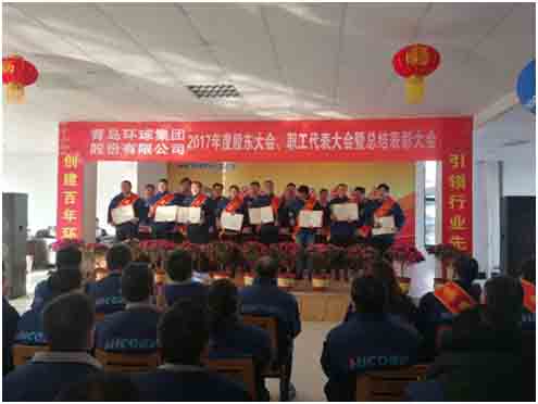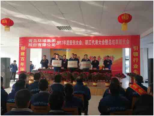 青島環球集團股份有限公司2017年度股東大會、職工代表大會暨總結表彰大會于2018年2月11日上午在集團職工餐廳隆重召開。來自集團各公司、事業部的股東和職工代表共計221人參加了此次會議。