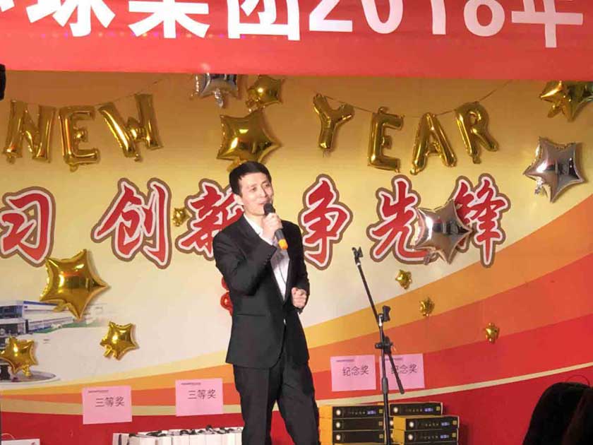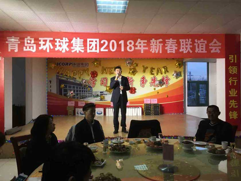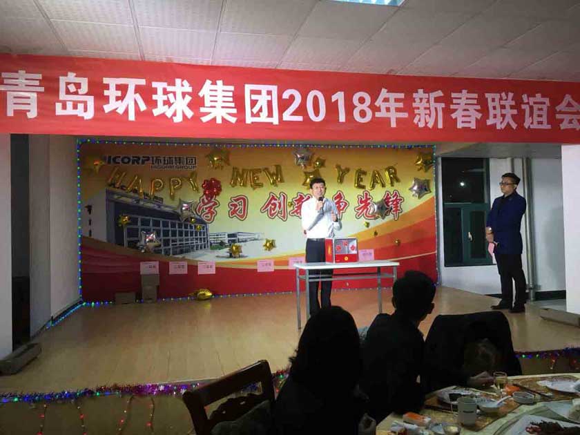 環球家宴在振奮人心的鞭炮聲中拉開了帷幕,孫總宣布晚會開始,會上紡機公司2017年度銷售狀元、集團標兵代表徐鵬翔,工程裝備公司2017年度銷售狀元、先進代表楊廷波,青島汽配2017年度集團標兵王偉分別發言,代表營銷團隊、生產團隊對集團的培養和鼓勵表示感謝,暢談了入職環球,成為環球人一路走來的收獲和感受,同時號召全體環球人在2018年有新目標,有新行動,有新作為,為了“引領行業先鋒,創建百年環球”的歷史使命,全力以赴,再創輝煌。